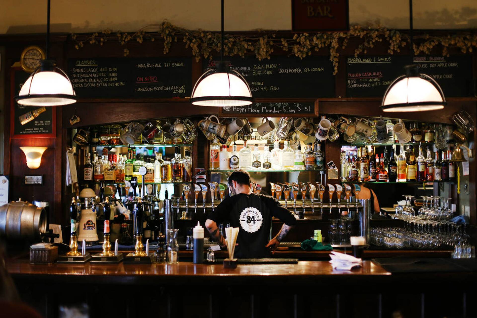 Straight ahead is Swans, easy to spot with its glassed-in patio and hanging flower baskets. Attached to an artsy boutique hotel, the 1989-launched brick-walled establishment has recently moved from in-house beers to regional favourites like Driftwood Brewery’s Fat Tug IPA and 33 Acres of Ocean Pale Ale.